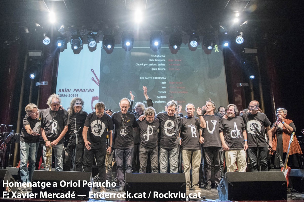 El desaparegut Oriol Perucho (4) va rebre un sentit, emotiu i divertit homenatge a la sala Apolo el dilluns 6 de novembre amb un concert molt especial fet per amics i col·laboradors d'aquest músic iconoclasta i difícilment classificable.