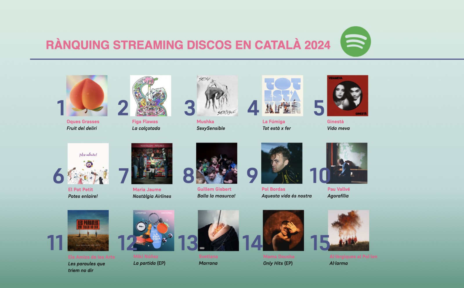 Els discos del 2024 més escoltats en llengua catalana a Spotify han estat d’