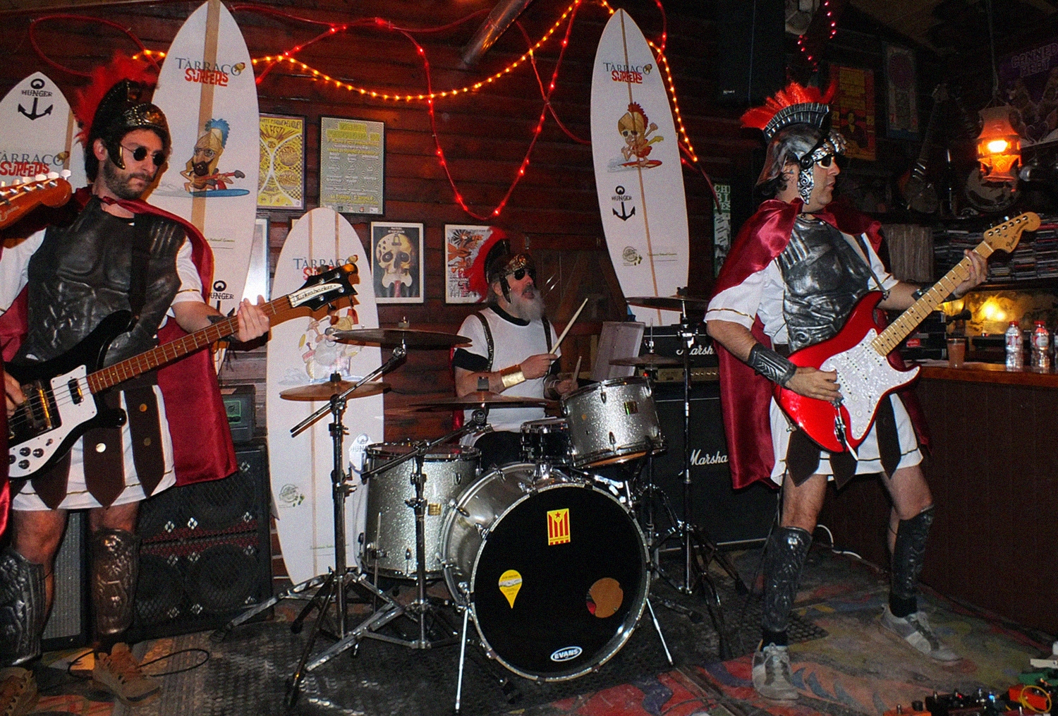 Tàrraco Surfers tenen clar també que l'estètica ha d'acompanyar la música, i com a bons romans que són, surten a escena disfressats de centurions. És per donar més credibilitat a la vostra proposta? “En el món de la música surf hi ha tota una subcultura estètica que agrada molt al públic. Los Straitjackets van amb màscares de lluitadors mexicans, i Man Or Astro-Man? van d’astronautes. Per això i aprofitant la nostra història anem disfressats de centurions romans.”