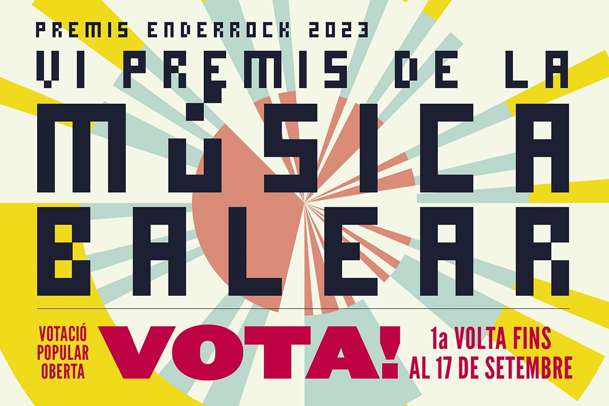Avui arrenca la votació popular dels Premis Enderrock de la Música Balear 2023. La primera volta, per triar els finalistes de cada categoria, es mantindrà oberta fins al 17 de setembre a les 24h. Tothom qui ho vulgui hi podrà participar elegint i votant els seus discos, cançons, directes i artistes preferits. Els guanyadors de la votació popular es donaran a conèixer a la gala dels Premis Enderrock de la Música Balear, que enguany se celebrarà el 20 d'octubre al Teatre Principal de Palma.