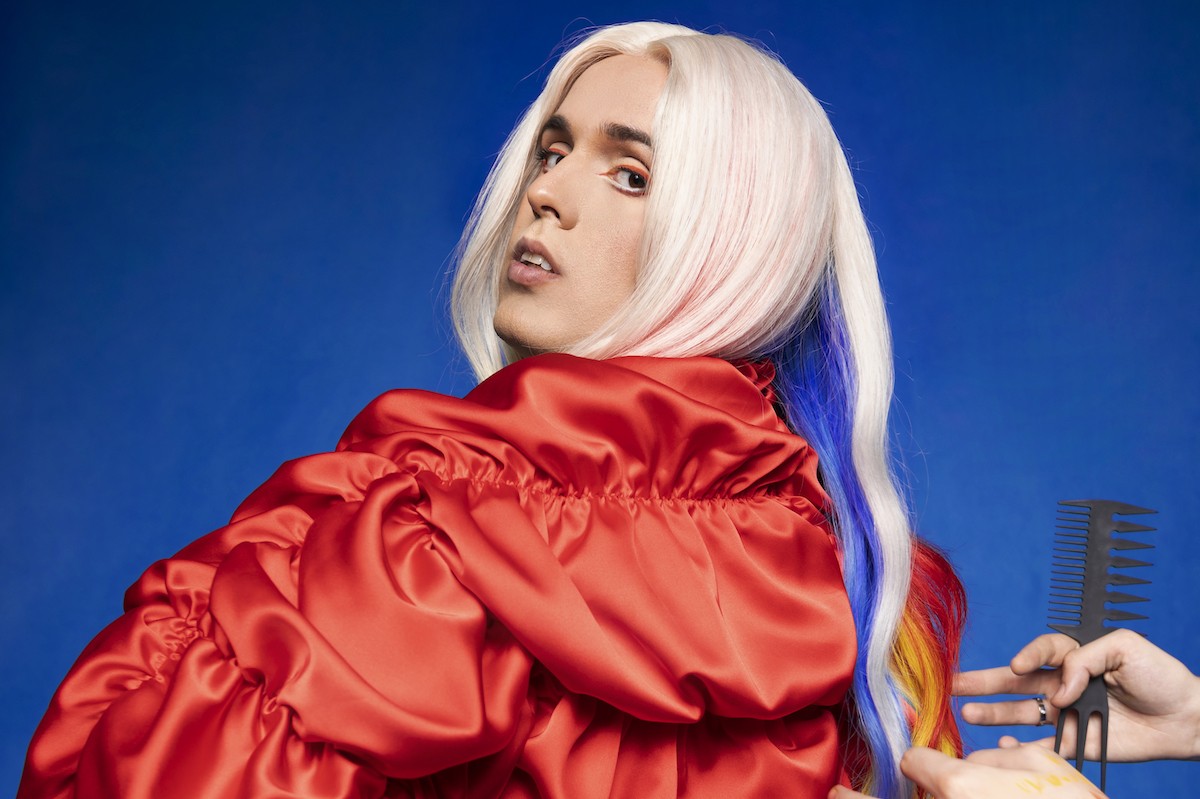 La perruca l’ha fet el meu dissenyador, Pelayo Muñiz, amb qui he treballat per crear un disseny innovador i que encaixi dins el meu concepte. Els tres colors més representatius són el blau, el groc i el vermell, els colors primaris, perquè simbolitzen l’inici de tot, són els primers colors que estudiem a l’escola, i ara són la meva nova oportunitat musical. Per a mi aquest disc és realment la meva carta de presentació: estic tornant a començar, estic tornant a treballar amb el públic i m’estic donant a conèixer. Per altra banda, el concepte també gira al voltant dels superherois, sobretot en les meves fotografies, i aquests colors tan vius encaixen perfectament amb això. M'he convertit en un superheroi amb la missió d’emergència de salvar el pop que s’ha fet fins ara.