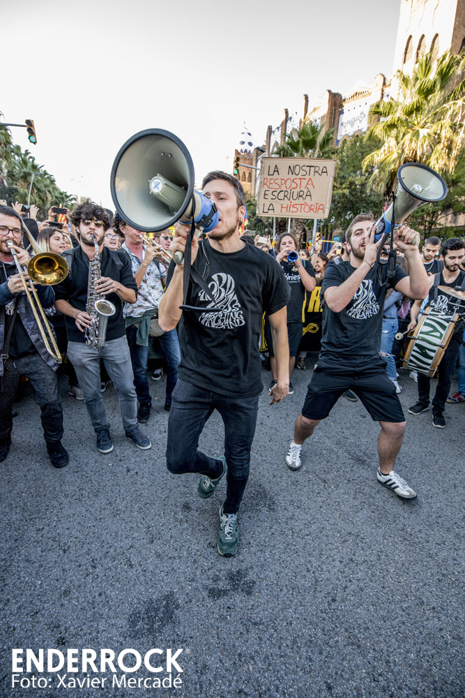 Músics contra la Repressió a la manifestació del 26 d'octubre al carrer Marina de Barcelona