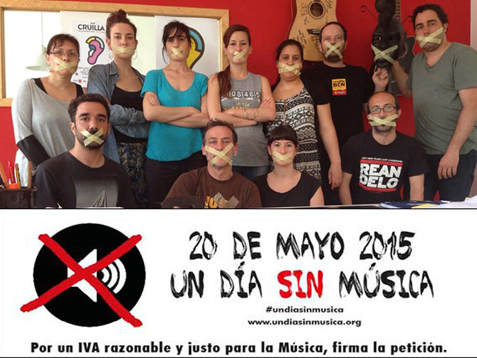 El dia 20 de maig els músics, promotors i sales de concerts han decidit que aquest sigui "Un dia sense música" en protesta per l'aplicació del 21% de IVA en el sector.