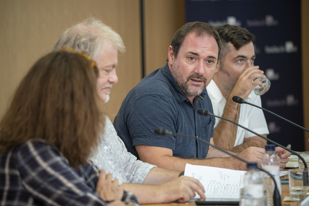Roda de premsa de presentació de l'Anuari de la Música 2022 a la seu de l'SGAE amb Raquel Bassas (ARC), Lluís Gendrau (Enderrock), Miquel Curanta (ICEC), i Dani Granados (ICUB)