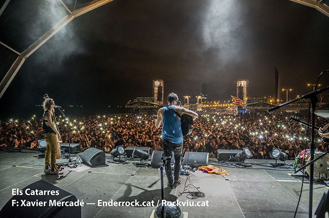 Galeria fotogràfica del concert Mediterràniament fet a la platja del Bogatell (Barcelona) el dia 23 de setembre de 2015 dins les Festes de la Mercè. Hi van actuar Joan Dausà, Els Catarres, Els Amics de les Arts i Oques Grasses.