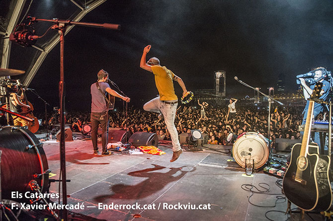 Galeria fotogràfica del concert Mediterràniament fet a la platja del Bogatell (Barcelona) el dia 23 de setembre de 2015 dins les Festes de la Mercè. Hi van actuar Joan Dausà, Els Catarres, Els Amics de les Arts i Oques Grasses.