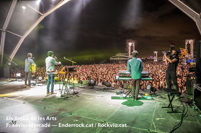Galeria fotogràfica del concert Mediterràniament fet a la platja del Bogatell (Barcelona) el dia 23 de setembre de 2015 dins les Festes de la Mercè. Hi van actuar Joan Dausà, Els Catarres, Els Amics de les Arts i Oques Grasses.