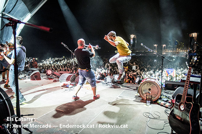 Galeria fotogràfica del concert Mediterràniament fet a la platja del Bogatell (Barcelona) el dia 23 de setembre de 2015 dins les Festes de la Mercè. Hi van actuar Joan Dausà, Els Catarres, Els Amics de les Arts i Oques Grasses.