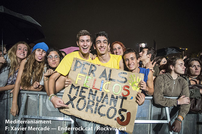 Galeria fotogràfica del concert Mediterràniament fet a la platja del Bogatell (Barcelona) el dia 23 de setembre de 2015 dins les Festes de la Mercè. Hi van actuar Joan Dausà, Els Catarres, Els Amics de les Arts i Oques Grasses.