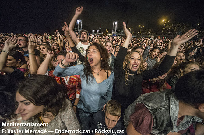 Galeria fotogràfica del concert Mediterràniament fet a la platja del Bogatell (Barcelona) el dia 23 de setembre de 2015 dins les Festes de la Mercè. Hi van actuar Joan Dausà, Els Catarres, Els Amics de les Arts i Oques Grasses.