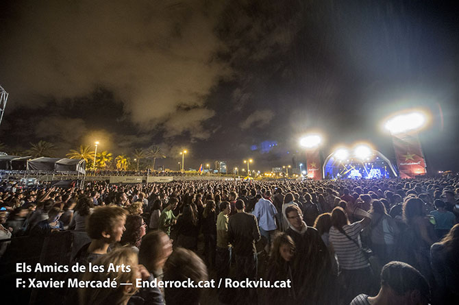 Galeria fotogràfica del concert Mediterràniament fet a la platja del Bogatell (Barcelona) el dia 23 de setembre de 2015 dins les Festes de la Mercè. Hi van actuar Joan Dausà, Els Catarres, Els Amics de les Arts i Oques Grasses.