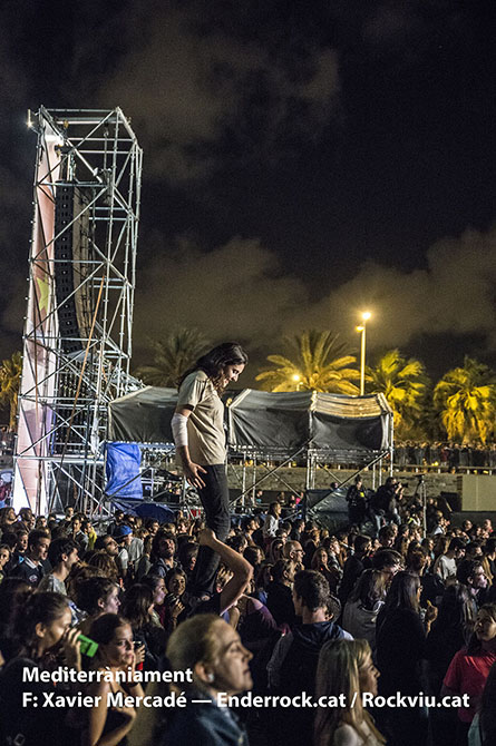 Galeria fotogràfica del concert Mediterràniament fet a la platja del Bogatell (Barcelona) el dia 23 de setembre de 2015 dins les Festes de la Mercè. Hi van actuar Joan Dausà, Els Catarres, Els Amics de les Arts i Oques Grasses.