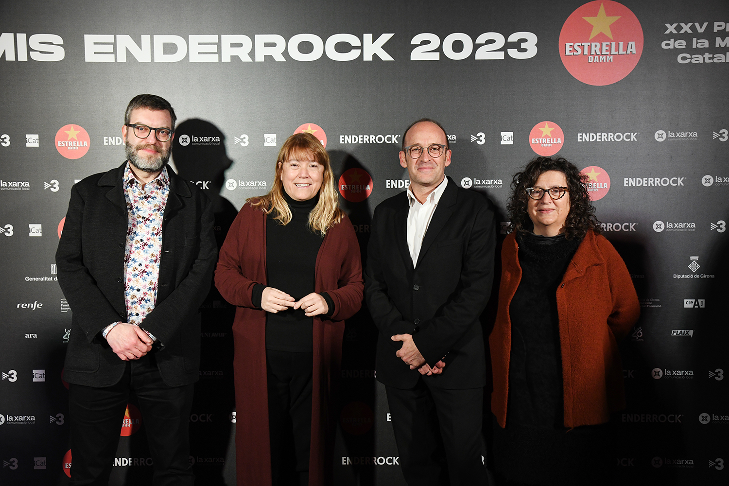 Photocall Premis Enderrock 2023-Mas Marroch (Vilablareix-Girona) Jordi Puig, Irene Pascual, Xavi Canet (U98 Music) i Roger Padrós