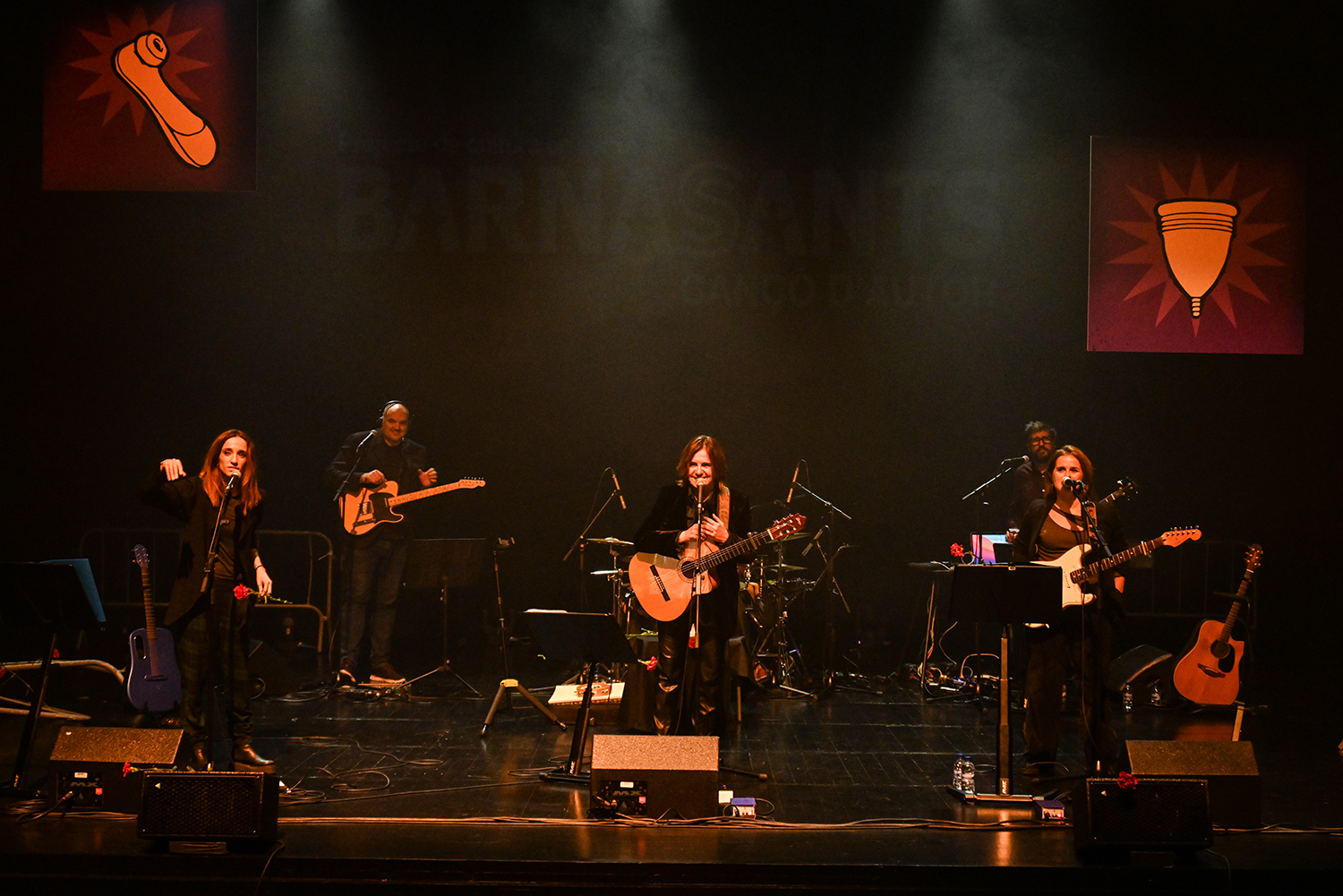 L'espectacle inaugural del BarnaSants 2024 va anar a càrrec d'unes Kol·lontai electrificades amb tres de les seves fundadores: Ivette Nadal, Sílvia Comes i Meritxell Gené |El nou espectacle, amb poesia a dojo, deu la seva sonoritat més elèctrica al seu director musical Valen Nieto i els músics Marc Clos i Xarli Oliver