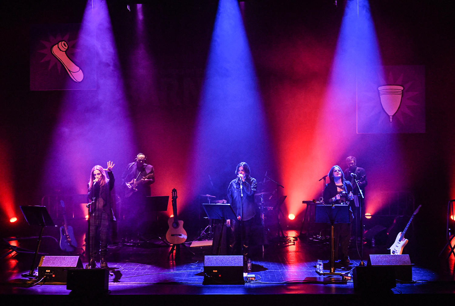 L'espectacle inaugural del BarnaSants 2024 va anar a càrrec d'unes Kol·lontai electrificades amb tres de les seves fundadores: Ivette Nadal, Sílvia Comes i Meritxell Gené |El nou espectacle, amb poesia a dojo, deu la seva sonoritat més elèctrica al seu director musical Valen Nieto i els músics Marc Clos i Xarli Oliver