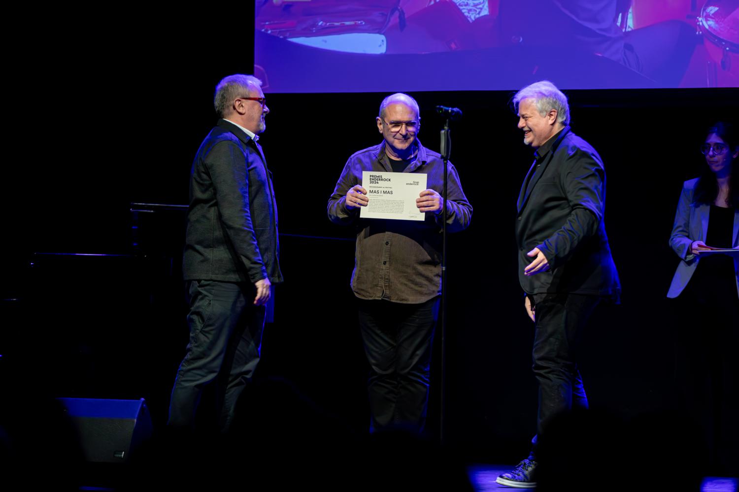 Premis Enderrock-440 2024: La gala <p>Lluís Gendrau entregant un Reconeixement a la Indústria Musical a Josep Mestres i Joan Mas, del festival Mas i Mas<br></p>
