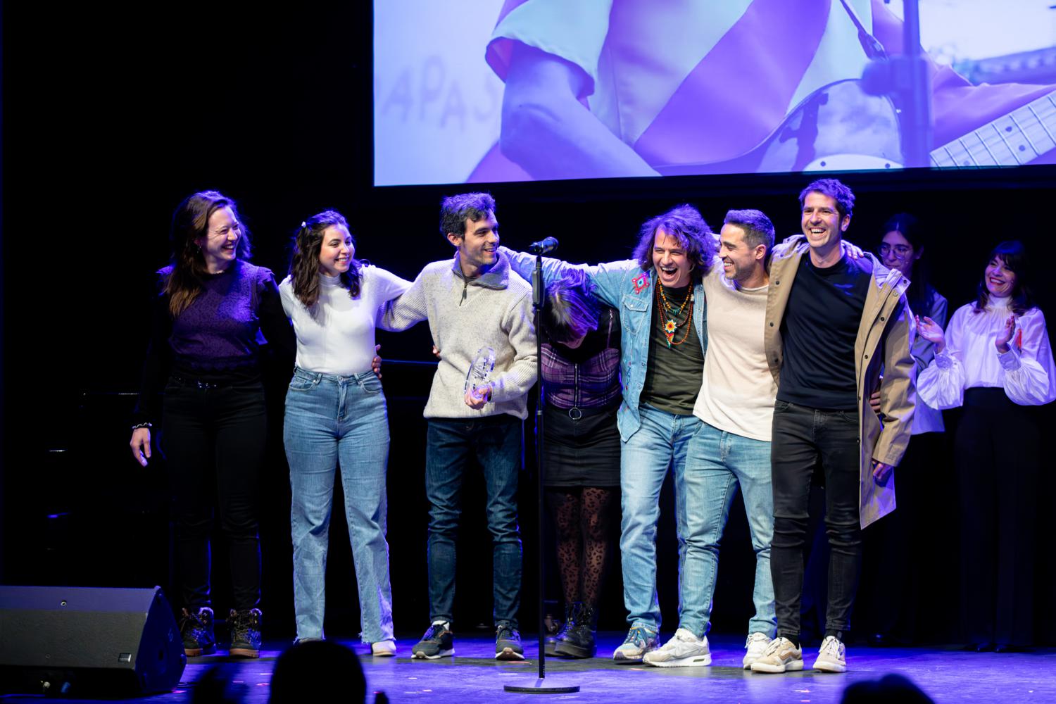 Premis Enderrock-440 2024: La gala <p>Foto de família dels guardonats a la primera gala dels Premis Enderrock-440</p>
