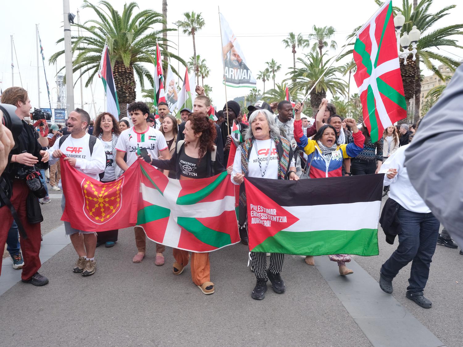 Joan Dausà, Triquell i Suu, entre d'altres, amb la Global Sumud Flotilla a Barcelona