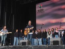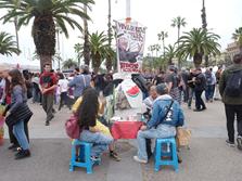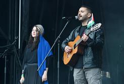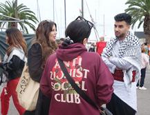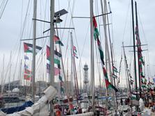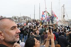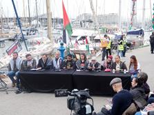 Joan Dausà, Triquell i Suu, entre d'altres, amb la Global Sumud Flotilla a Barcelona