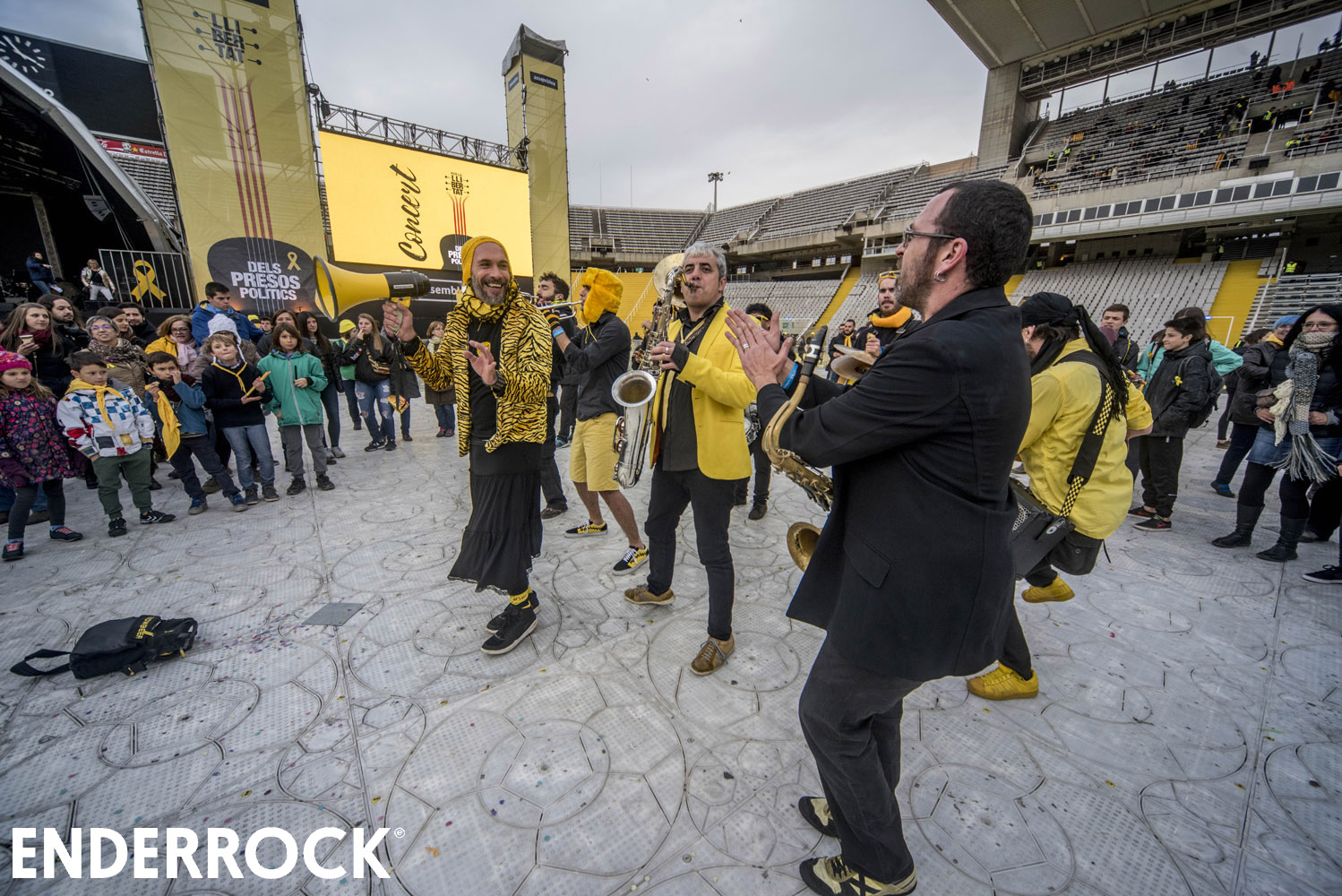 El dissabte 2 de desembre una quarantena de músics van pujar a l'escenari de l'Estadi Lluís Companys per reclamar la llibertat dels presos