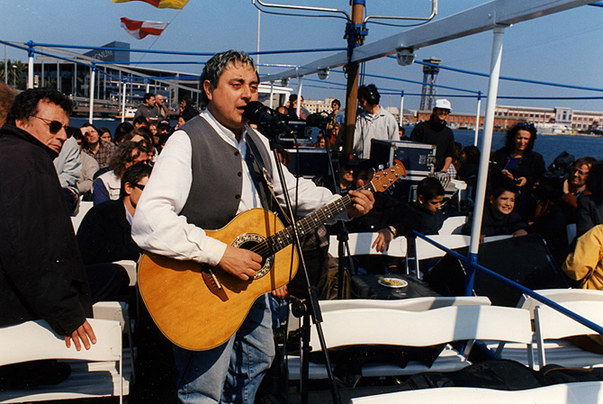 Actuant a una Golondrina al moll de Barcelona, any 1995 Foto: Martí E. Berenguer