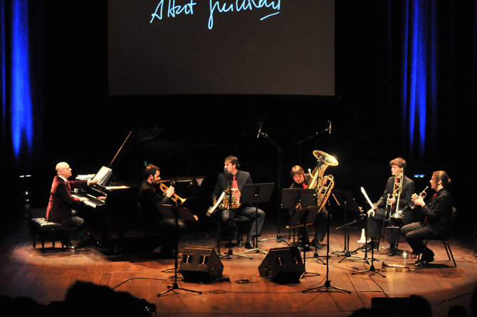 El músic Albert Guinovart al concert de celebració del seu 50è aniversari a sala Oriol Martorell de L'Auditori (Barcelona), el 27 de febrer de 2012.