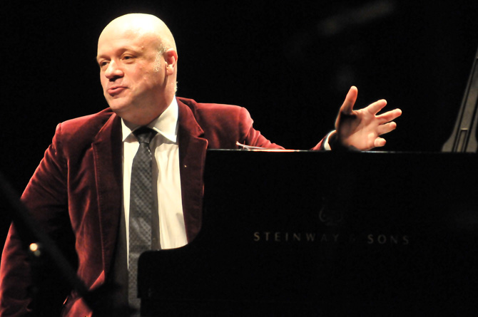El músic Albert Guinovart al concert de celebració del seu 50è aniversari a sala Oriol Martorell de L'Auditori (Barcelona), el 27 de febrer de 2012.