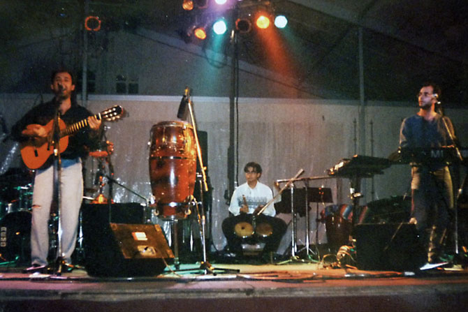 Debut musical de Johnny Salazar · Octubre de 1993 · Fires de Girona · Rafalito Salazar, Johnny Salazar i Pep Lladó · Foto: arxiu Ai Ai Ai