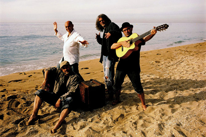 Sessió de fotos per a la revista Sons de la Mediterrà nia · Primavera de 2008, platja de Sant Andreu de Llavaneres · Pep Lladó, Rafalito Salazar, Jordi Gas i David Torras · Foto: Juan Miguel Morales