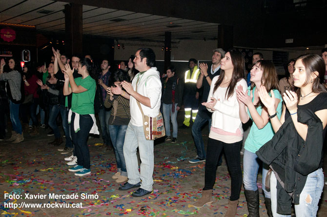 Assaig de La Pegatina davant els lectors de la revista Enderrock per preparar la gira de presentació del disc Eureka! (Kasba, 2013). Concert realitzat a les 12 del migdia del dia 20 de febrer de 2013 a la sala Salamandra de l'Hospitalet de Llobregat.
