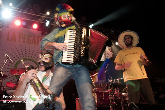 Assaig de La Pegatina davant els lectors de la revista Enderrock per preparar la gira de presentació del disc Eureka! (Kasba, 2013). Concert realitzat a les 12 del migdia del dia 20 de febrer de 2013 a la sala Salamandra de l'Hospitalet de Llobregat.