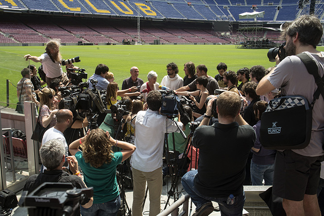 Visita a l'escenari i roda de premsa prèvia al Concert per la Llibertat al Camp Nou (Barcelona), el dia 27 de juny del 2013.