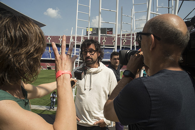 Visita a l'escenari i roda de premsa prèvia al Concert per la Llibertat al Camp Nou (Barcelona), el dia 27 de juny del 2013.