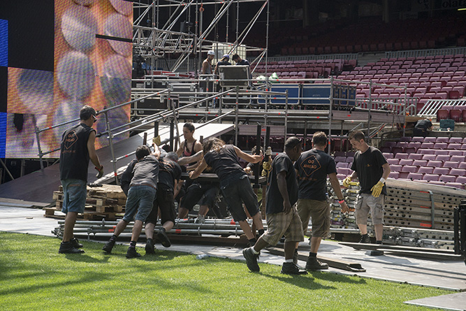 Visita a l'escenari i roda de premsa prèvia al Concert per la Llibertat al Camp Nou (Barcelona), el dia 27 de juny del 2013.