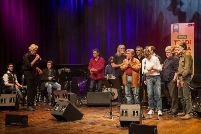 A banda d'Eduard Iniesta (bandúrria, mandolina, tzouras), al concert hi van actuar Juan Aguiar (llaüts i doble corda), Gabriel Amargant (clarinets i saxos), Daniel Farran (percussions i mandolina), Arnau Figueres (percussions), Quim Ramos (guitarra i guitarra elèctrica) i Manu Sabaté (gralles i clarinet baix). També van pujar a l'escenari alguns músics de L'Harmònica Brava: Joan Albert Amargós, Xavier Batllés, Carles Benavent, Pep Cabré, Jordi Fàbregas i Saki Guillem.