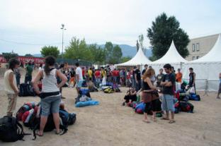 Des de les nou del matí era molta la gent ja circulava pel poble de Sant Celoni i la que mica en mica ha anat arribant al recinte de l'Acampada. A les 12, hora en la qual s'han obert les portes del recinte, prop de 2.000 joves esperaven poder entrar dins del recinte per plantar les tendes de campanya.