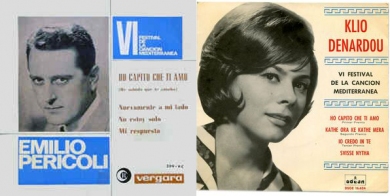 Dos dels epés que van publicar-se al voltant del VI Festival de la Canción Mediterránea, amb l'italià Emilio Pericoli i la grega Klio Denardou