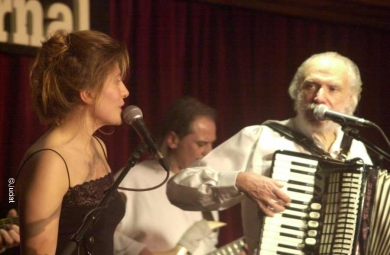 Maria Teresa va compartir escenari sovint amb el cosmopolita cantautor d'Alexandria, interpretant peces com "L'inconsolable", "Le facteur" o "Portugal". Pel que fa als tres músics que constituiran el grup base, van acompanyar Moustaki des de principi dels anys noranta fins als seus darrers concerts, quan els problemes respiratoris van obligar-lo a abandonar les seves actuacions a Barcelona i València, el gener de 2009.