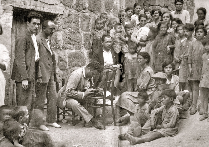 Joan Tomàs i Joan Amades recollint cançons a Balaguer el 1927 Foto: Arxiu familiar Joan Tomàs