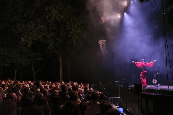I d'on ve aquest amor per Catalunya per iniciar gira a aquí? Després d'estudiar a l'ESMUC (d'aquí el seu vessant políglota a l'escenari, apostant pel català sempre que no li era un inconvenient per la comunicació fluïda) i també de l'èxit que li va suposar el disc anterior més introspectiu Manual de cortejo (Aris Música, 2019), cosignat amb el barceloní Raül Fernandez Refree, dues raons de pes, Cuevas va fer una gira anterior que va trobar moltes dates també en terres catalanes. Rodrigo Cuevas defensa la música i el folklore asturià i en asturià amb una desimbultura i una experimentació sonora i estètica que triomfa allà on va. A això se li han unit unes ganes boges de festa i ball en aquest nou repertori a jutjar pel que es va veure a la vora de l'estany banyolí.