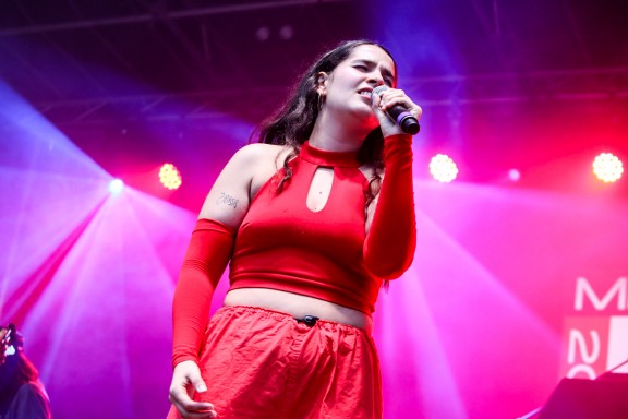 La primera artista en pujar sobre l’escenari ha estat l’argentonina Elape. Tota sola, ha desplegat el seu pop amb influències de la música jamaicana, amb cançons com “On my Way” o “La Pausa”. En el tram central del concert, ha deixat la musicació del poema “Foc a terra” de Marina Miralles, que ha cantat acompanyada només per la seva guitarra. Per altra banda, lluny de la influència jamaicana, ha optat per versionar en acústic un dels temes més emblemàtics del rock alternatiu dels noranta: “Zombie”, de la banda irlandesa The Cranberries.