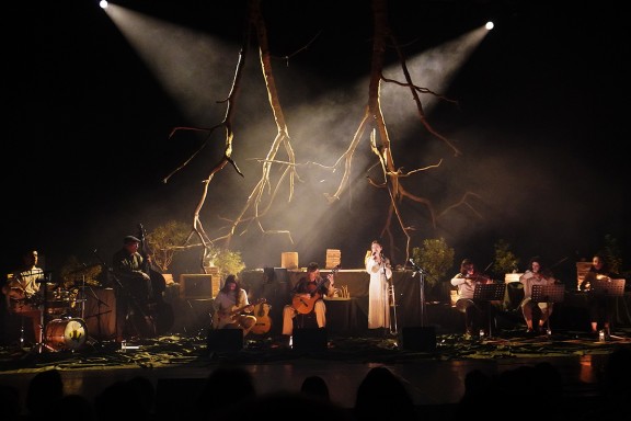 Payés es va presentar a Girona damunt d'un escenari majestuós alhora que espectral, que recordava els imaginaris de Terry Gilliam a Tideland (2005); amb dos enormes faigs –recollits pel que va confessar a Canet d'Adri– penjant cap per avall del sostre. Un marc que creava una notòria foscor, i que connotava i subratllava, potser en excés, el caràcter introspectiu de la proposta.