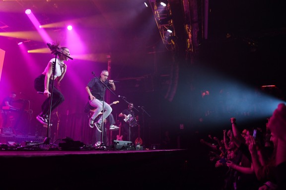 Després d'entonar "Renaixem" i "A ple pulmó", va arribar la primera col·laboració de la nit a "Balansiya". Amb un raig de llum que només permetia veure'n la silueta, Noèlia Llorens 'Titana' i La Maria van entonar a capella un fragment del tema, al qual després se'ls va sumar Xiomara Abello, Sarrià i la resta de la banda.