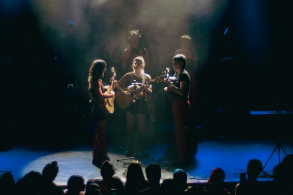 En la gairebé hora i mitja que va durar el concert, hi va haver molts moments que van fer posar la pell de gallina. Amb els primers acords de “Divendres tanca tard” amb Joana Subirats i Marina Rico esquena contra esquena, es va poder intuir que, el que el grup estava a punt de fer a l’escenari, seria màgic. I no era mentida: juntes van aconseguir crear una atmosfera única i traslladar tot el públic a un altre univers només amb les seves veus i la guitarra acústica de Subirats.