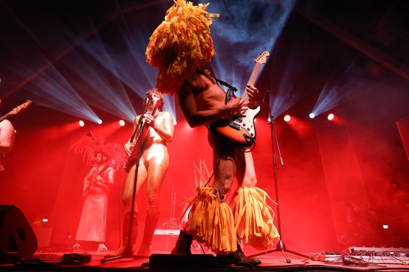 Poc després, a la plaça de la Formiga s'hi va presentar un espectacle d’allò més peculiar: Ypnosi i el seu rock de to crític i irònic. Vestits com si acabessin d’atracar un basar amb xurros de piscina, safates d’alumini o calçotets personalitzats, la banda va aixecar el públic de la FiM amb un seguit de temes de la seva llarga discografia, com “Playboy” o “Bigotets”, inclosos en el disc Amigos para siempre (autoeditat, 2024). En aquesta última, el cantant va aprofitar per saltar de l’escenari i barrejar-se amb el públic per convidar-lo a cantar la tornada, que va acabar amb una versió en solitari de “We Are the Champions” de Queen. També van interpretar la “The Tyets”, una cançó crítica amb els grups mainstream del panorama musical català. El concert va acabar amb una petició per part del grup als organitzadors de deixar de fer els shows tan curts i donar-los més espai per a poder fer “les seves tres hores de discografia i espectacle”.