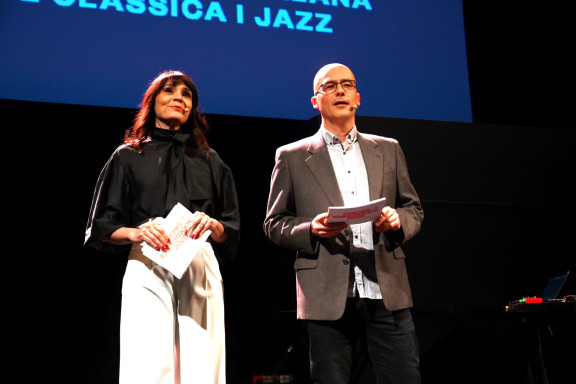 La gala ha arrencat amb l’actuació de la cantant colombiana establerta a Les Cases d’Alcanar Meli Perea. Fusionant ritmes afrollatins i electrònica ha presentat a l’escenari gironí una de les cançons del darrer treball Temas, terapias y visajes (Guspira, 2026): “Dins de la font”. Tot seguit, el director del Grup Enderrock Lluís Gendrau ha donat la benvinguda als assistents, i ha destacat com “la qualitat i la difusió del jazz i la clàssica catalana té presència no només al nostre territori, sinó arreu del món gràcies a l’excel·lència de les estrenes, homenatges i músics que formen part de les més prestigioses orquestres”.