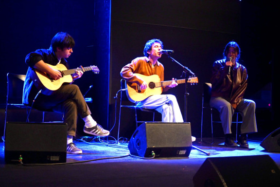 Ferran Palau i Mar Pujol, amb Leo Palau, actuant als Premis Enderrock 2026 Foto: Juan Miguel Morales