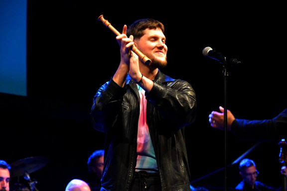 Fredrik Strand amb la Cobla Ciutat de Girona en directe als Premis Enderrock-440 2026 Foto: Juan Miguel Morales
