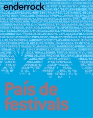Per primera vegada, el Grup Editorial Enderrock edita un exhaustiu dossier del mapa musical català a través dels festivals d'estiu als Països Catalans. És un ampli recorregut per prop d'un centenar de cites que s'han programat enguany arreu del territori, amb desenes de propostes artístiques que abasten tots els estils, des del pop i el rock fins al folk, el jazz i la clàssica. Es tracta sens dubte d'un retrat musical i cultural que, malgrat la crisi, ens mostra un País de Festivals, tant pel que fa a qualitat com a quantitat.