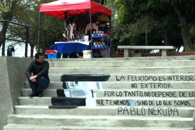 Fa uns quants anys era habitual, però ara com ara no és gaire corrent que els cantautors del país creuin fronteres per presentar les seves cançons. Feliu Ventura s'ha proposat trencar aquesta dinàmica. El de Xàtiva ha visitat el país andí un any després d'haver-hi desembarcat per primer cop de la mà del festival BarnaSants. Ara, però, han estat una sèrie d'organitzacions culturals i socials xilenes les que han unit esforços perquè el músic creués de nou l'Atlàntic, a més en una data especilament assenyalada: el quarantè aniversari del cop d'estat militar que va derrocar el president Salvador Allende i el govern d'esquerres de la Unitat Popular. "Evidentment hi ha un interès previ meu per tot el que representa Xile en l'univers de la cançó d'autor, però alhora aquest viatge no hauria estat possible sense l'interès de la gent d'allí", tant d'organitzacions socials com de l'agència Nueva Santiago, "la germana de Propaganda pel Fet! a Xile".